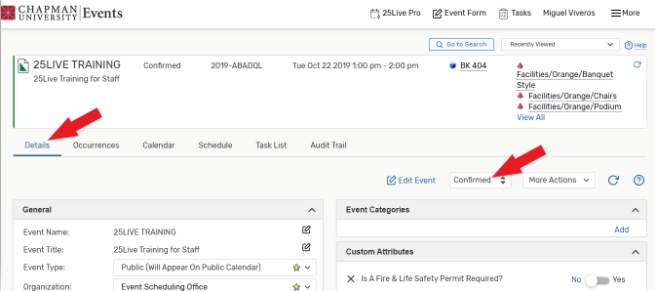 Checking Event Status in 25Live