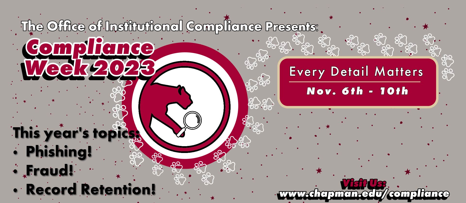 This year, Compliance Week is from November 6th to November 10th! This year’s theme is “Every Detail Matters.” We will discuss phishing, fraud, and record retention this year. In each of these categories, small details have enormous implications. We’ll provide helpful information and exciting stories.