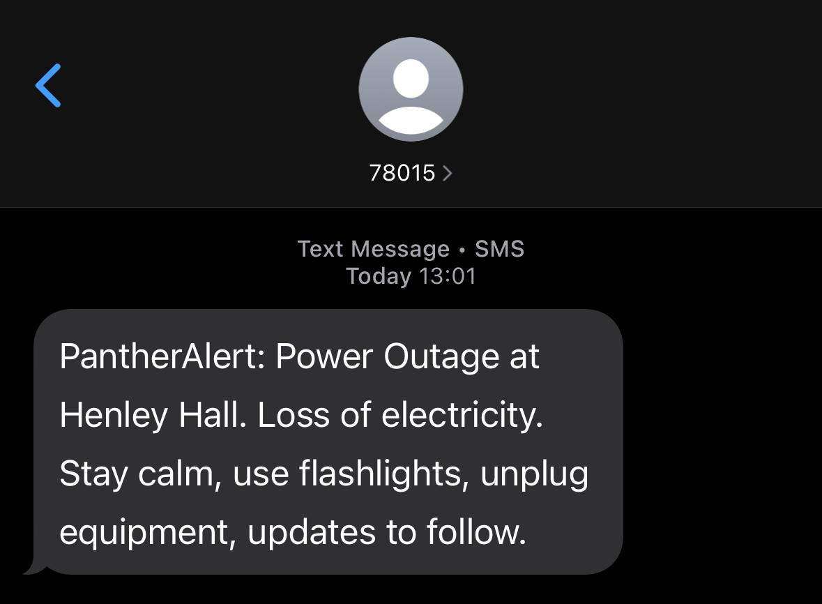 What number will Panther Alert text messages come from?