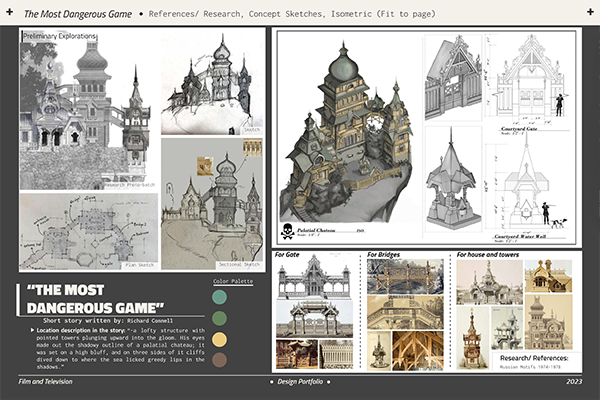 Do you have a background in design, art or architecture? How about the humanities such as literature or art history? Drawing and design skills are paramount to sophisticated development of film design, but fundamentally what we do is develop a story, so knowledge of culture and sophistication of story structure is central to the design process. These are all areas that contribute to a mastery of production design. First and foremost, a film designer is a dramatist, developing a story for the screen.