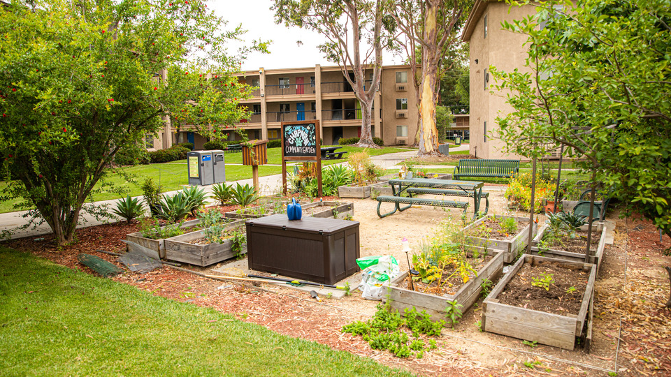 - The Davis Apartment complex is separated into five three-story buildings, each of which has one- and two-bedroom floor plans. Each building faces a central grassy quad that overlooks the community garden.