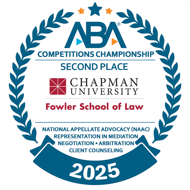 FSOL Clinches Historic 2nd Place ABA Competitions FinishIn a year of unprecedented wins for the school, Chapman University Fowler School of Law placed second in the American Bar Association’s 2025 Competition Championships. The wins, places and other achievements of the 2024-2025 school year led to this year’s outstanding national ranking.