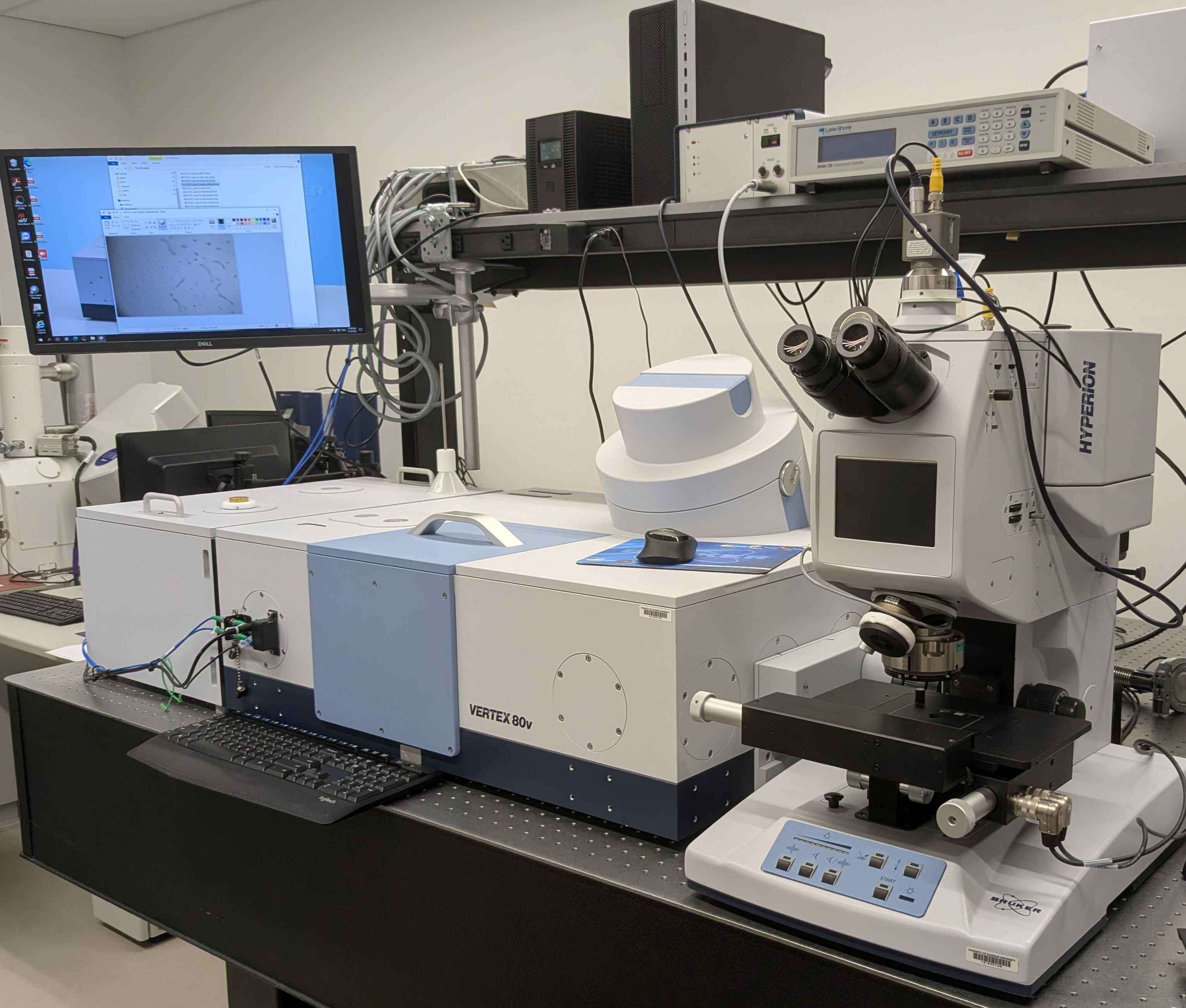 Bruker VERTEX 80v FT-IR spectrometer together with the Bruker HYPERION 2000 microscope,