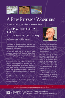 The Many Worlds of Quantum Mechanics by Sean Carroll. Wednesday, September 16 @5PM