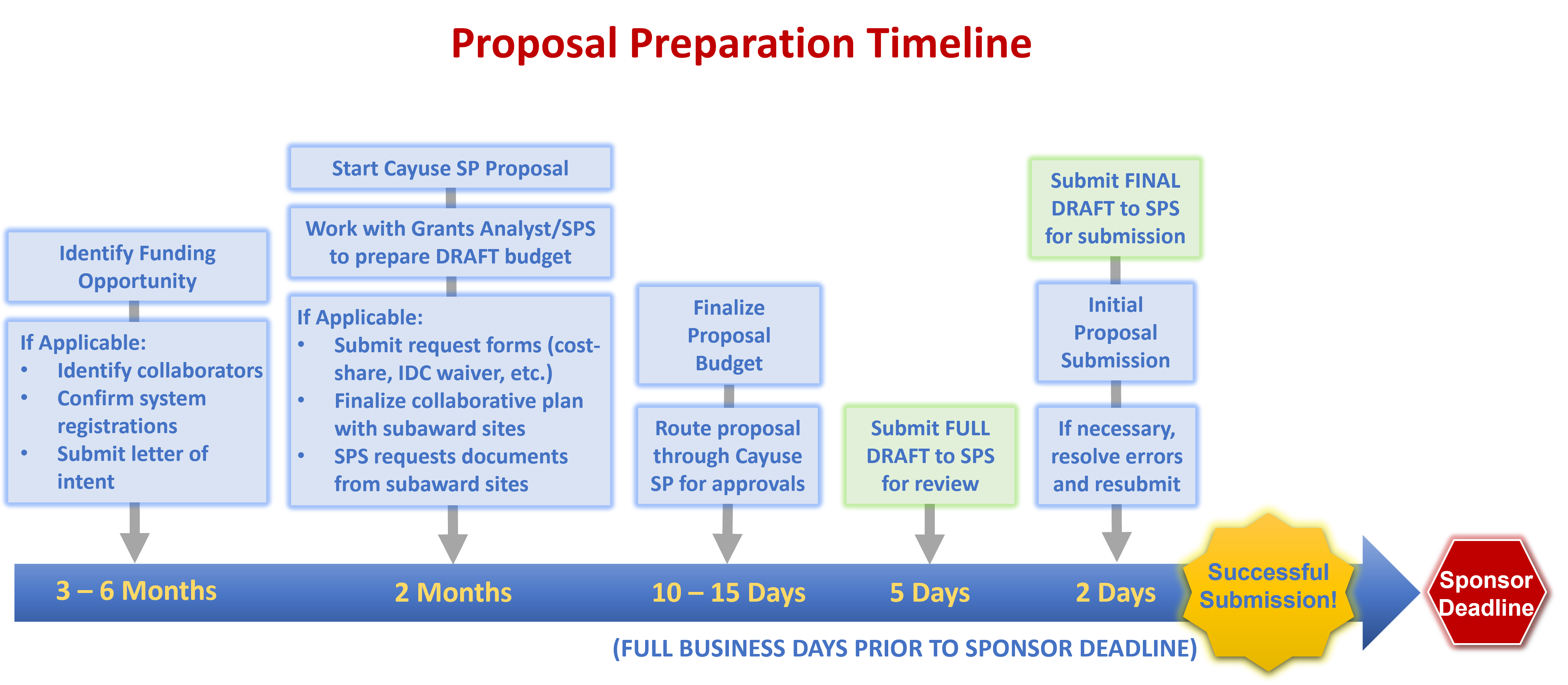 Here is a Grant Proposal Timeline form, that has a date generator to assist with due dates and deadlines for proposals.