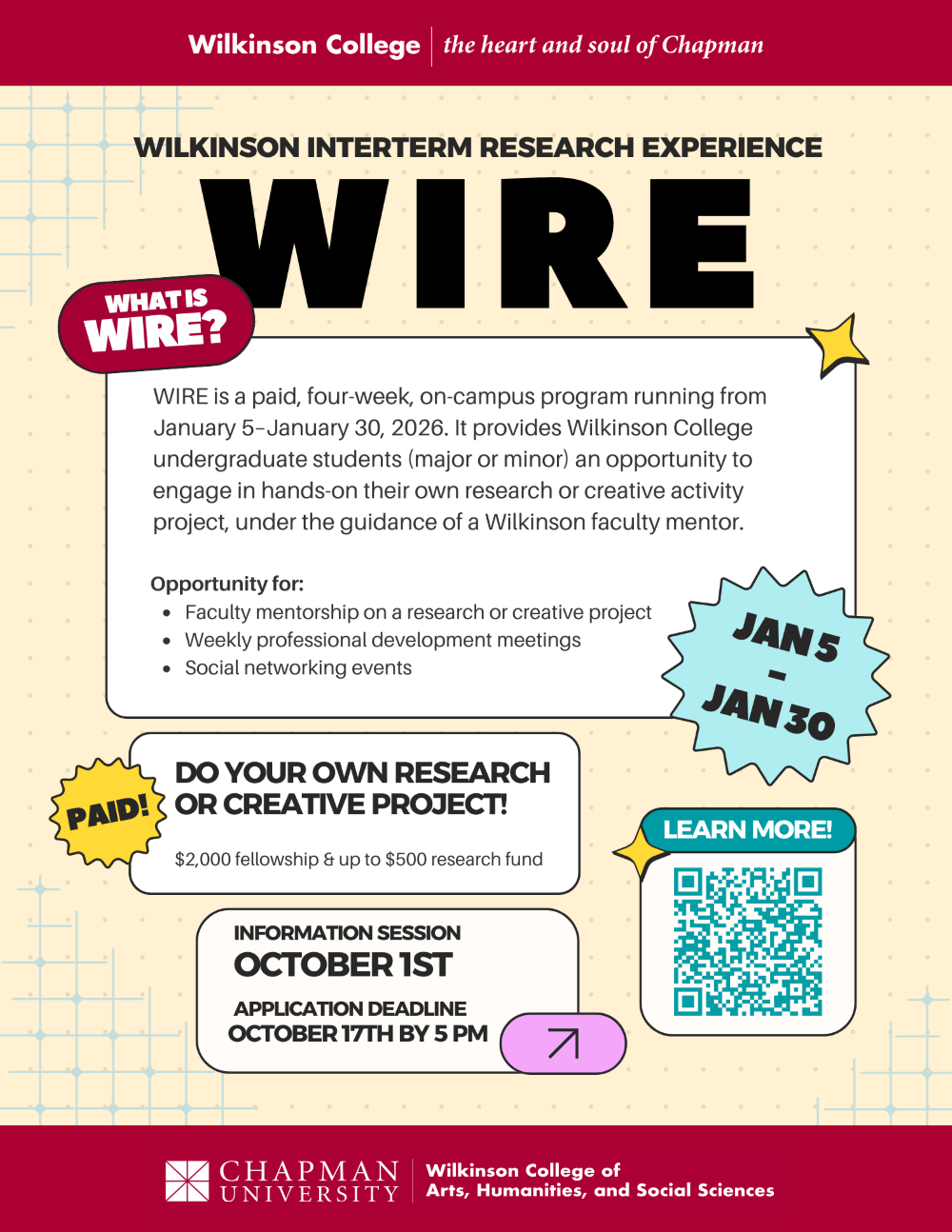 Wilkinson College of Arts, Humanities, and Social Sciences hosts a wide variety of events throughout the year such as lectures, documentary/film screenings, panel debates, art exhibits, conferences, poetry/literary readings, and so much more - with our biggest event series being, Engaging the World: Leading the Conversation in our community on issues of humanity, unity, and justice.