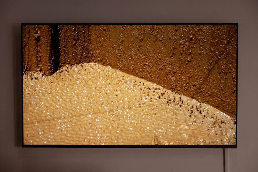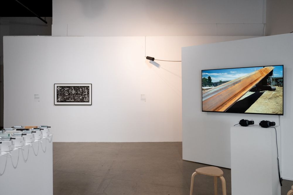 Additionally, Malena Szlam’s film ALTIPLANO (2018) creates visual rhythms against a soundscape generated from infrasound (below human hearing) recordings of volcanoes, geysers, and Chilean blue whales and Alba Triana’s sound sculpture Music on a Bound String No. 2 (2015) operates at the nexus of light and sound waves. Energy Fields also reflects on the contributions of Indigenous artists and traditional environmental knowledge across four continents connected by the Pacific Ocean.