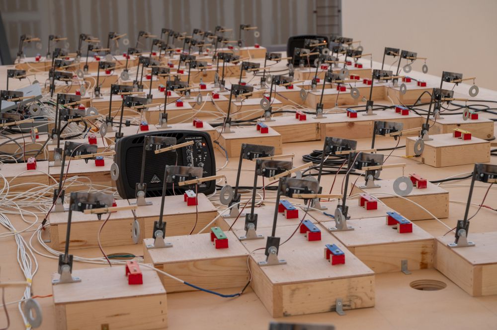 ear(th), 2004. Wood, glockenspiels, robotic elements, electric circuity, and looping audio