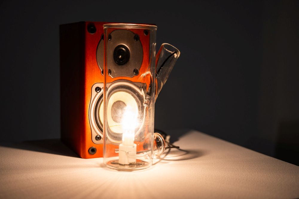 Thermal Acoustics, 2013-Ongoing. Glass tubes, Liebig condenser, nichrome heaters, handmade amplifiers,