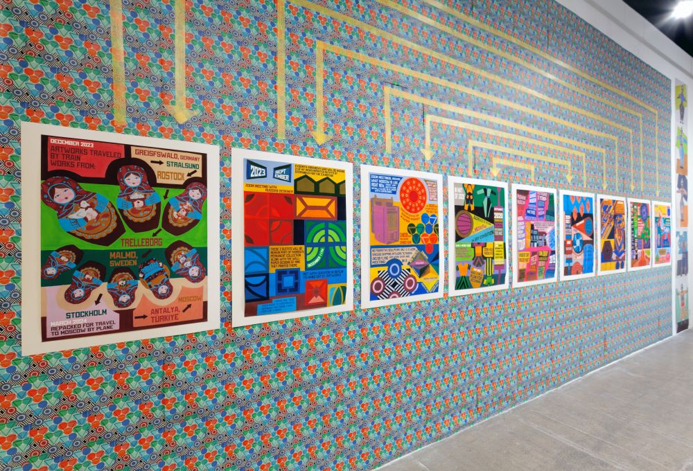 A century after Constructivism’s experiments with bold, vibrant coloration, neutrality has become the dominant aesthetic, with cars, buildings, garments, and digital devices and designs muted to project safety, efficiency, and emotional restraint. Against this backdrop, Lippire’s exuberant use of hue and pattern offers a visual interruption, immersive, sensuous, and assertive, whose chromatic intensity reclaims color as a mode of attention, expression, and embodied engagement. The exhibition also addresses the gendered dimensions of art and design history. By foregrounding Stepanova’s textiles, theater sets, and graphic innovations, often marginalized in dominant accounts of modernism, Lippire reasserts the intellectual and aesthetic significance of practices historically relegated to the category of applied arts. In recovering and extending these histories, Stepanova Project – Color as Form affirms a model of resilience grounded in care, adaptability, and creative labor.