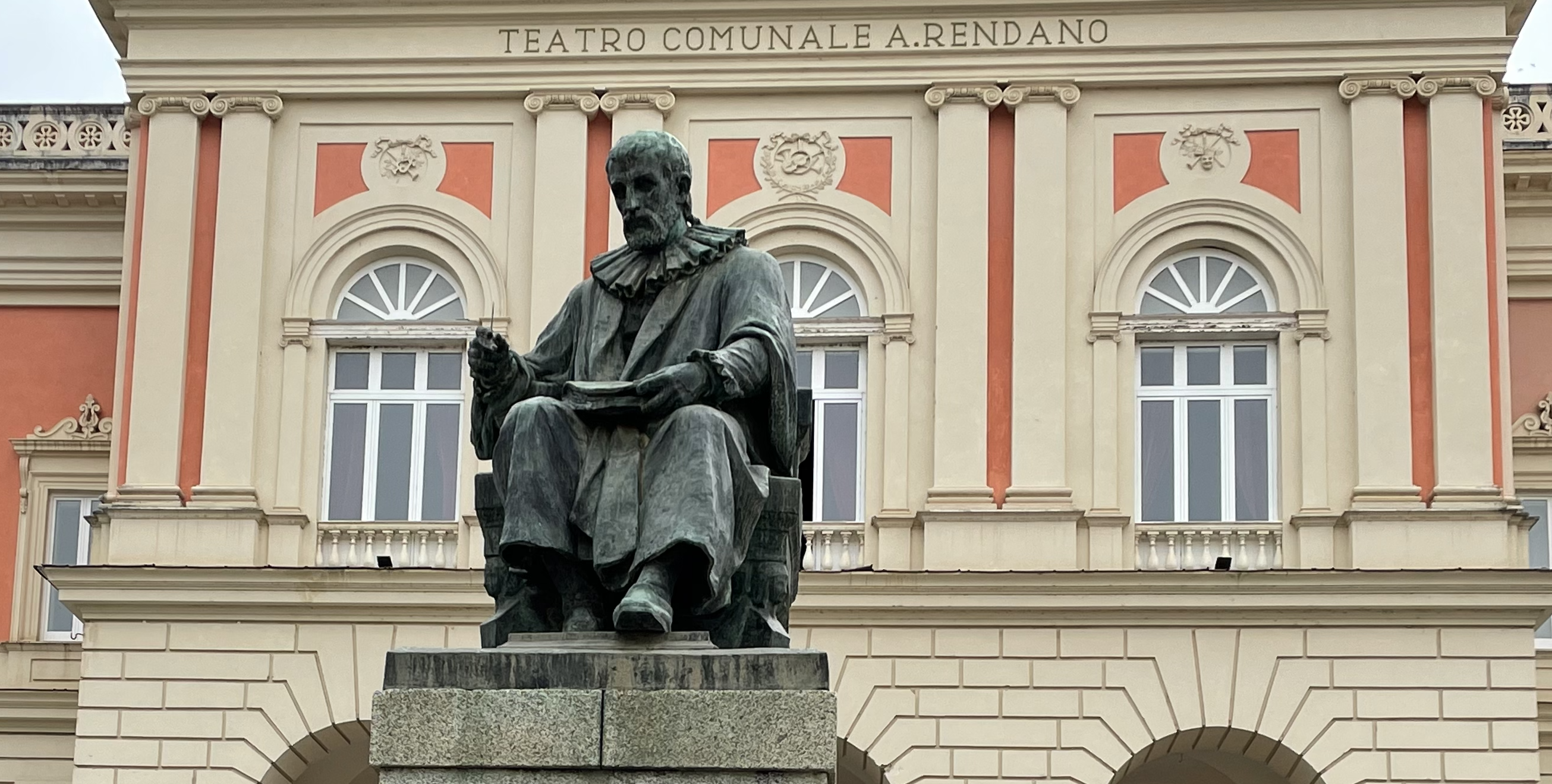 Telesio’s statue in front of Teatro Comunale Rendelli in the center of old town Cosenza.